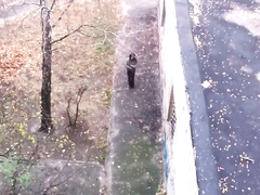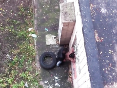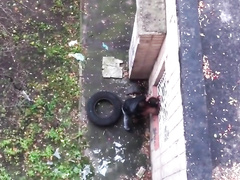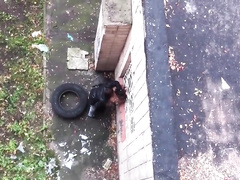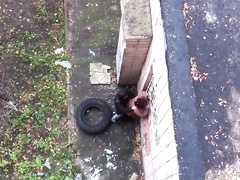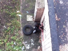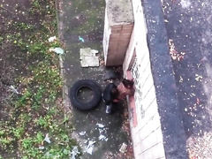 sexy couple shagging in a public place next to the wall